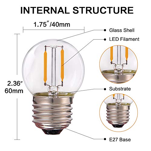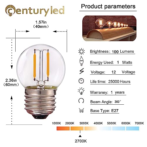 Grensk AC/DC 12V-24V a bassa tensione, mini lampadina a LED G40 Edison, 1W equivalente a 10W a incandescenza - E27 2700K base a vite bianca calda (illuminazione decorativa) Non dimmerabile-15Pack