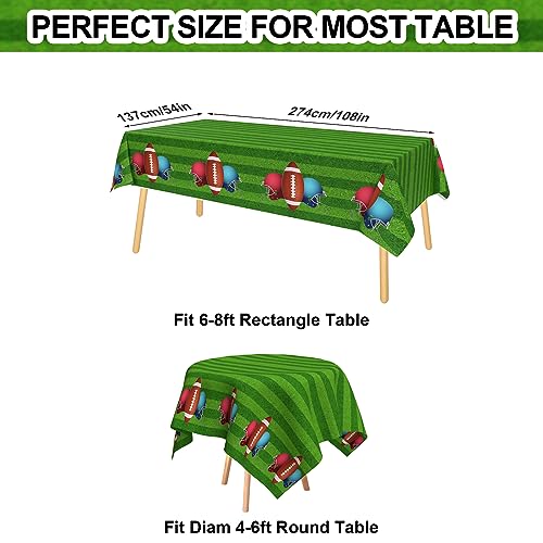 Materiali sicuri: la copertura per tavolo da rugby è realizzata in materiale plastico facile da pulire, garantendo sicurezza e durata. Questa tovaglia per feste può essere riutilizzata molte volte, è impermeabile, non scolorisce e resistente agli strappi. Puoi usarlo con tranquillità. (Nota: la tovaglia è piegata per l'imballaggio, se si preferisce una superficie liscia, è possibile aprirla e appiattirla prima dell'uso. Evitare di posizionare stoviglie calde direttamente sulla tovaglia.)