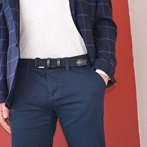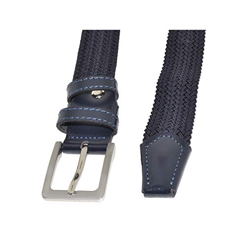GRESEL Cintura Elastica Intrecciata, Uomo Donna, Con Inserti in Vera Pelle (Blu Scuro, 125 (54-56))