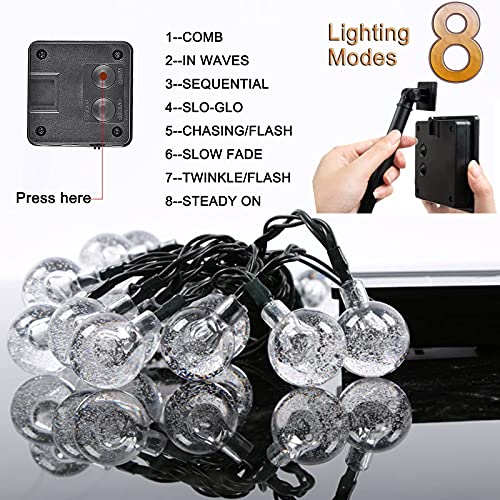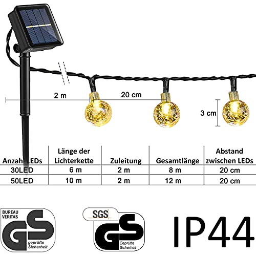[Catena luminosa solare per esterni] La stringa della luce solare è dotata di 30 luci LED a sfera di cristallo bianco caldo di alta qualità, ciascuna delle quali misura circa 30 cm. La distanza tra i due LED è di 20 cm e il cavo è di 2 m