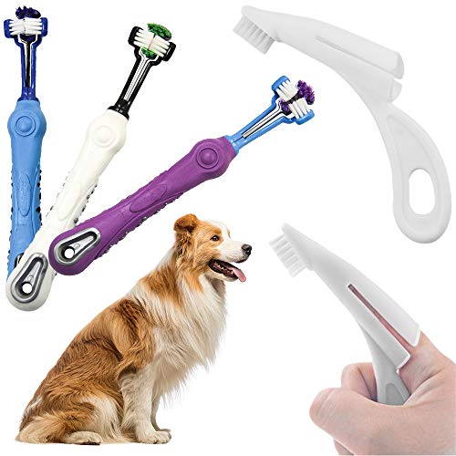 Gresunny spazzolino da Denti per Cani 3pcs spazzolini a Tripla Testina con 1pcs spazzolino Dito Silicone Pulizia de Denti Cura Dentale per Cane Gatti Animali Domestici