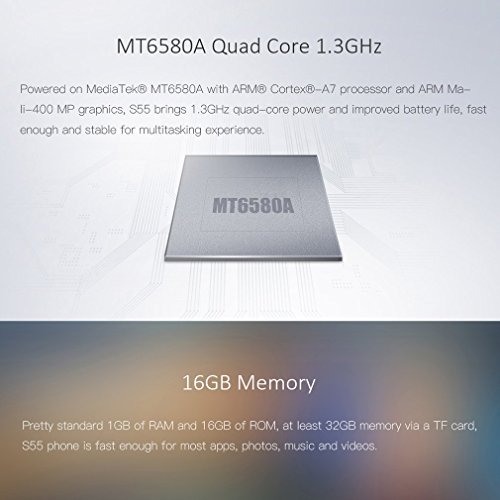Gretel S55 Smartphone Android 7.0 3G, 5.5 Pollici 1280 x 720P Quad Core 1.3GHz 1GB RAM 16GB ROM Dual Fotocamere Posteriore, Blu