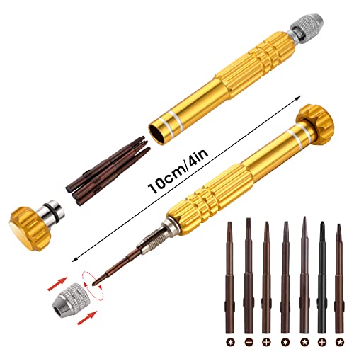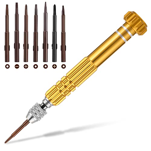 Grevosea 7-in-1 Mini Cacciavite Set Cacciavite Multifunzionale Slot in lega d'acciaio Computer Riparazione Strumento Cacciavite per Smartphone Elettronica Computer Orologio Occhiali (Oro)
