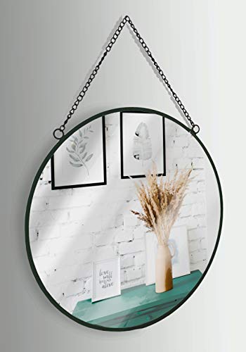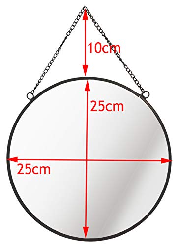 GreyZouq, Specchio rotondo con cornice in metallo nero stile vintage, con catena, 25 cm