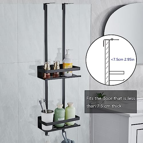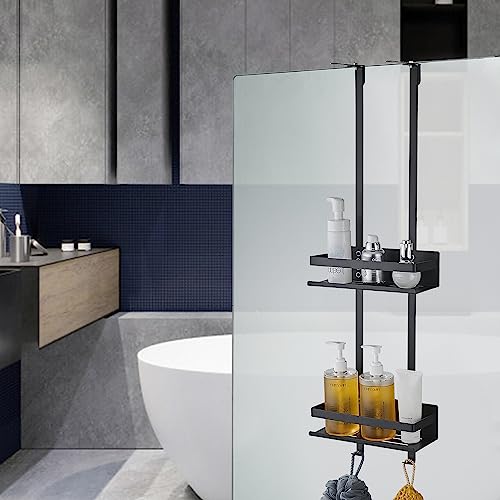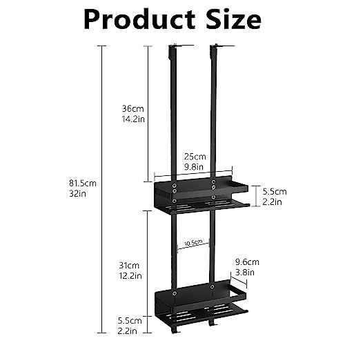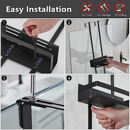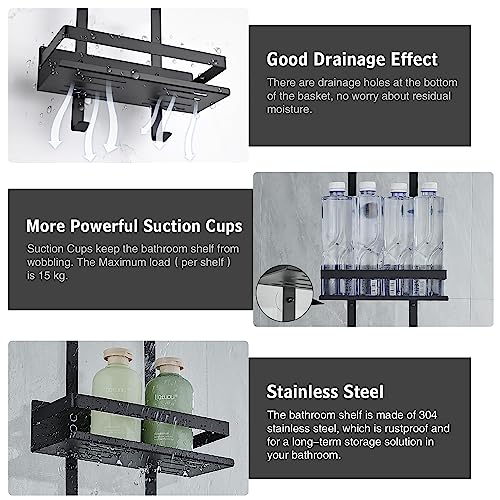 GRICOL Mensola Doccia Senza Foratura Mensole Bagno Appendere Inossidabile con 2 Ganci e 4 Ventosa Accessori Doccia per Bagno 2 Ripiani Nero
