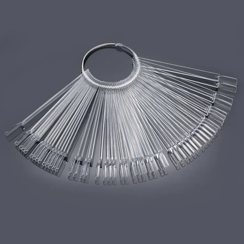 50 grid transparent skin color fan-shaped nail polish swatches practice nail display board nail tool color card template