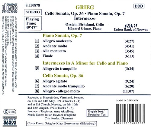 GRIEG: Cello Sonata, Op. 36 / Piano Sonata, Op. 7