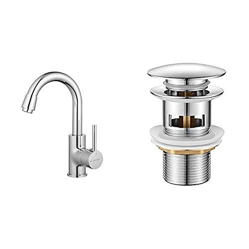 Grifema G1002 Irismart-Miscelatore Lavabo, Rubinetto Monocomando Per Bagno & Ibergrif, Scarico Lavabo Bagno Universale Pop Up 1/4 '', Valvola Piletta Lavandino Click Clack