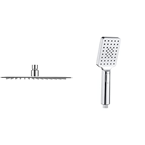 GRIFEMA G833 Soffione Doccia Pioggia in Acciaio, Diffusore Fisso Quadrato 25 x 25 cm, Cromo & G801 Doccetta Telefono Quadrata con 3 Funzioni Spray, Manopola Doccia Stop, On/Off