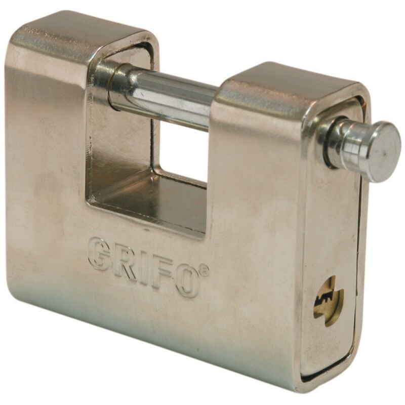 Lucchetto corazzato mm 90 grifo dom molle inox 3 chiavi corpo in ottone arco in acciaio temperato corazza in acciaio antiperforazione. con 3 chiavi. larghezza 90 mm