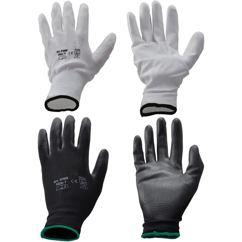 Resistenti alla perforazione, allo strappo, al taglio e all'abrasione. Adatti nell'industria, edilizia ed agricoltura. Conformi alle direttive CE EN 388. Con appendino.