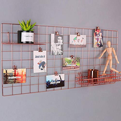 Griglia a Muro, Ins Cornice per Foto per la Decorazione e Lo stoccaggio, Bacheca Metallica, Memo Board, Organizzatore di Strumenti (Oro Rosa, 45x95cm)