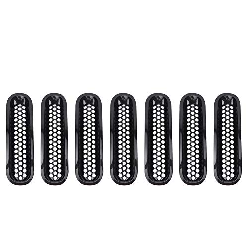 Griglia, Qiilu Griglia, griglia in maglia nera per paraurti anteriore per auto 7 pezzi adatta per Wrangler JK 2007-2017