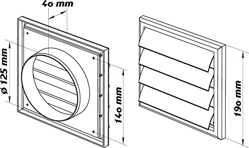 L3 griglia di ventilazione diametro griglia 125 mm, finitura bianca con Gravity feritoia doghe e insetti zanzariera griglia in plastica ABS resistente alle intemperie Siped Strappable Backdraft Damper griglia di protezione dalle intemperie Vent Hood flap