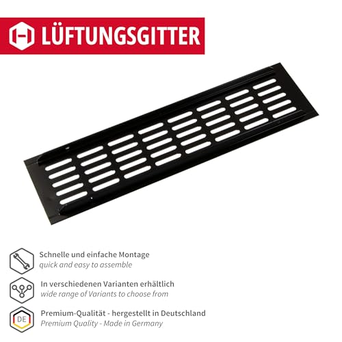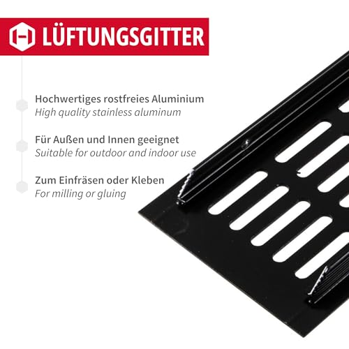 Materiale: alluminio - Materiale massiccio - Superficie: lamiera di ventilazione in alluminio nero opaco - Dimensioni: 300 x 80 mm - La robusta griglia di ventilazione è adatta per interni ed esterni.