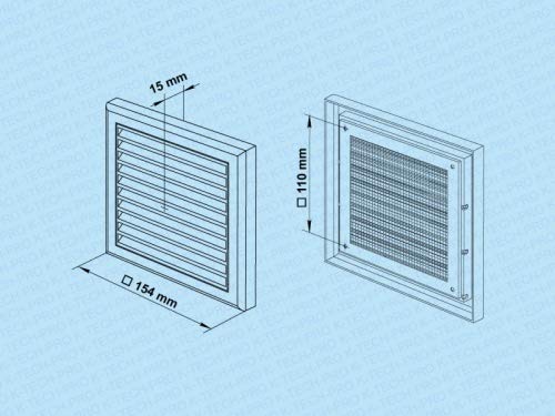 Griglia di ventilazione in ABS, protezione dagli insetti, senza flangia, richiudibile, dimensioni 154 x 154 mm