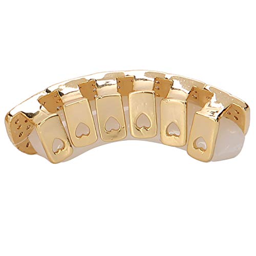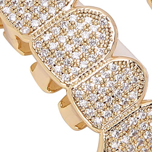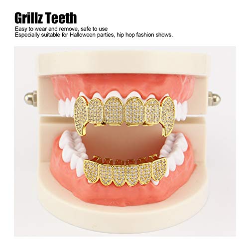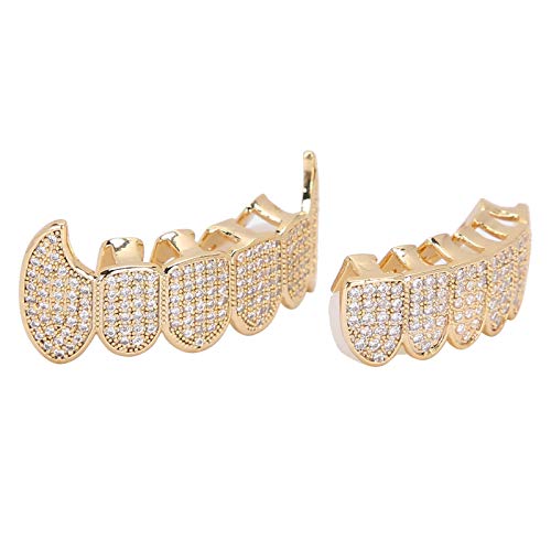Griglie per Denti Hip Hop in Rame Placcato a Freddo, Denti con Diamante Ghiacciato in Argento Dorato Grillz per Uomo Donna Rapper Costume Denti Gioielli e Accessori(oro)