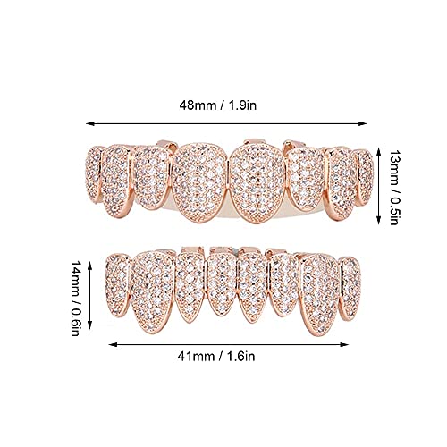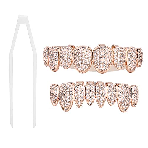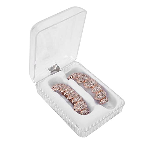Grillz, parentesi graffe grillz denti Hip Hop Teeth Grill Set Microset Diamond Braces ecologico ottone galvanico grill pratico da usare, perfetto per Halloween o altre occasioni
