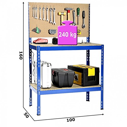 GRIMA - SCAFFALE BANCO da LAVORO in legno-metallo BLU 100 x 50 x 160h Portata 480 kg