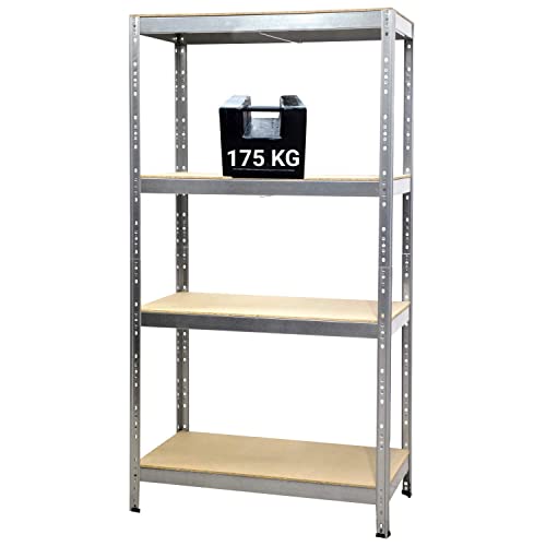 GRIMA Scaffale Metallo 4 ripiani Acciaio e Legno - 90x40X176h (175 KG ciascuna, totale 700KG) Scaffali in metallico, scaffalature metalliche, per casa, garage, cucina, libreria, ufficio