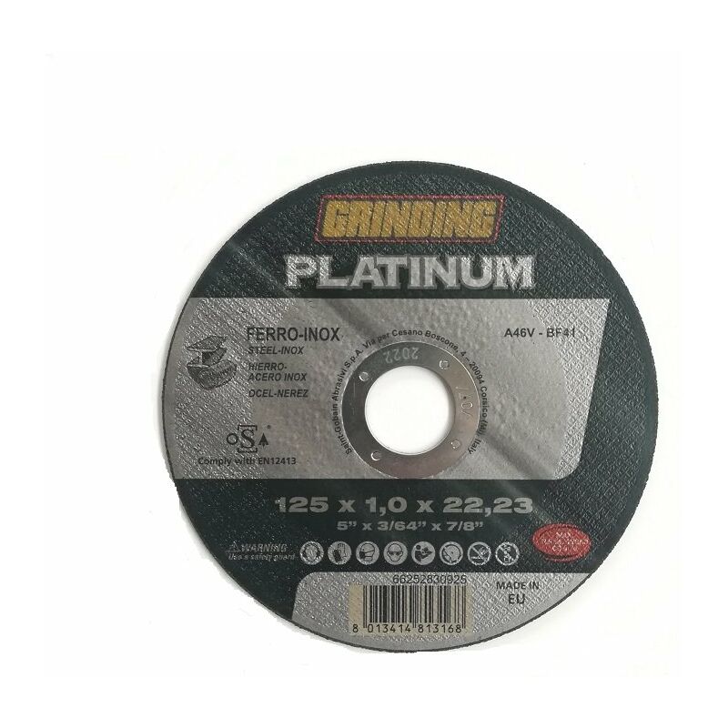 GRINDING PLATINUM DISCO SOTTILE DISCHI SOTTILI DA TAGLIO PER FERRO ACCIAIO INOX I dischi sottili Platinum rappresentano l'eccellenza della gamma GRINDING e la miglior scelta professionale in rapporto qualità/prezzo. L'utilizzo della nuova grana abrasiva di elevata tenacità consente una veloce penetrazione e mordenza nei materiali garantendo un miglioramento del 40% in durata e performance. Questa nuovissima formulazione assicura inoltre altissime prestazioni sia su macchine ad alta che a bassa potenza mantenendo inalterato il comfort per l'operatore. Specifica prodotto: A 46 V - FORMA 41 Applicazione: Ferro, Acciaio Inossidabile CARATTERISTICHE Ossido di Alluminio di alta qualità Esente da Ferro, Zolfo e Cloro Durata superiore +40% VANTAGGI Alta capacità d'esportazione e consumo ridotto Taglio veloce, pulito e preciso Prestazioni garantite sia su macchine ad alta che bassa potenza Dimensione AxBxC mm Specifica / Forma Codice articolo 115 x 1,6 x 22,23 A 46 V - BF 41 66252834834 125 x