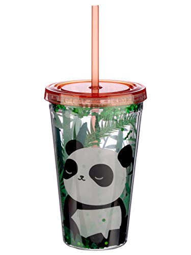 Grindstore Bicchiere Glitter Pandarama con Paglia e Coperchio