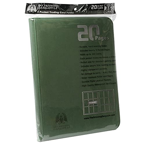 Grinning Gargoyle - Raccoglitore per carte da 20 pagine, 9 tasche, 360 tasche laterali - Supporto per collezione di carte collezionabili CCG (verde)