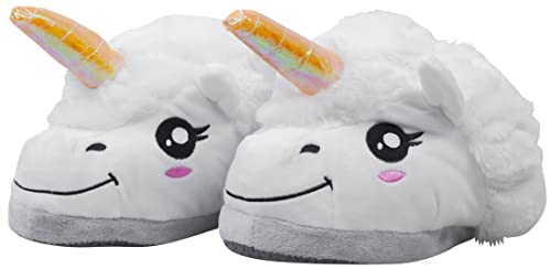 Grinscard Pantofole di Peluche Motivo Unicorno - Bianco dal Numero 28 al 35 - Ciabatte per Bimbi Ideali Come Regalo