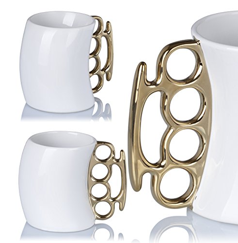 Grinscard Tazza in Ceramica con Impugnatura ad Anello Henkel - Design Impugnatura caffè Bianco 0,35 l - Gadget Tazza Regalo da caffè