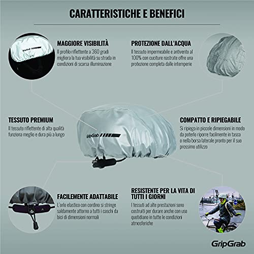 GripGrab Copri Casco Ciclismo Impermeabile Antivento Alta visibilità Copricapo per Bicicletta Pendolare, Rivestimento Unisex Adulto, Grigio Riflettente, Taglia Unica