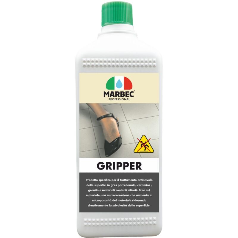 GRIPPER | Trattamento antiscivolo per materiali lapidei contenenti silicati come: graniti, gres porcellanato, ceramica smaltata, ecc. Crea sulla superficie del materiale una microporosità che riduce drasticamente la scivolosità della superficie bagnata. CARATTERISTICHE E IMPIEGO: GRIPPER è una soluzione acquosa di sali inorganici per il trattamento anti-scivolo di tutti i materiali contenenti silicati: graniti, gres porcellanato, ceramica smaltata, ecc. GRIPPER: si può usare su superfici sia interne che esterne;