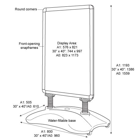 A1 Gris Sightmaster avec socle à lester avec de l'eau-double-Face snapframes