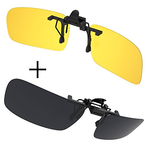 Gritin Clip su Occhiali da Sole, 2 Pezzi Day + Night Vision Occhiali da Sole Lenti Polarizzate da uomo/donna UV400 flip-up - comodo e sicuro ideale per esterno e guida