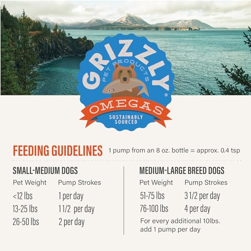 Grizzly Wild Alaskan Olio di Salmone per Cani Integratore Alimentare Omega 3 Acidi Grassi, 8oz