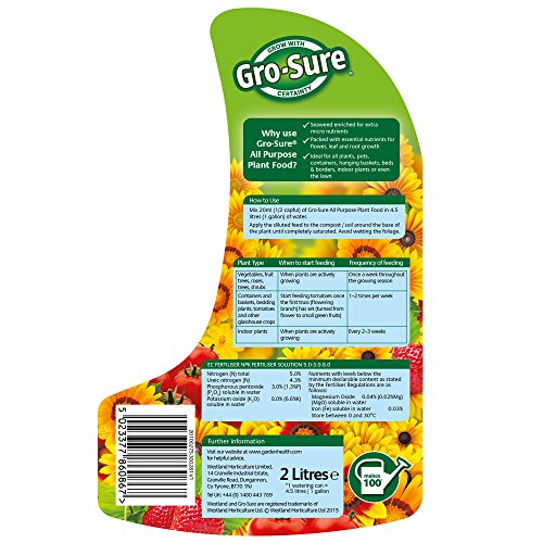 Gro-sure - Fertilizzante Multiuso, arricchito con alghe, 2 l, Trasparente