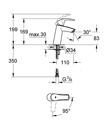 Grohe 2339510E Eurosmart New Es Miscelatore Monocomando per Lavabo A Risparmio Energetico, Altezza Media, Ecojoy, Cromo, M