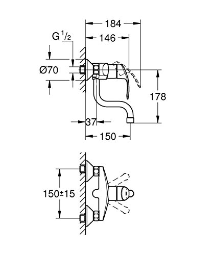 Grohe 31509002 Miscelatore Monocomando per Lavello, Cromo, Wandmontage Ausladung: 150 mm