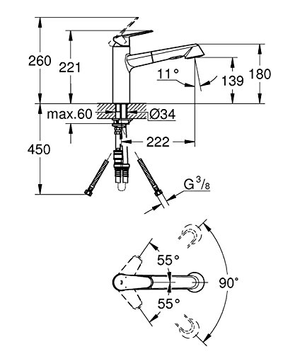Grohe 32257002 Eurodisc Cosmopolitan Miscelatore Monocomando Lavello Con Doccetta Estraibile, 2 Getti, Cromo, Bocca a L