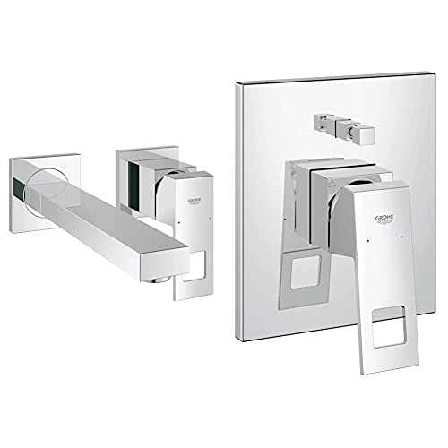 Grohe Eurocube Miscelatore Monocomando Per Lavabo Con Installazione A Parete, Lunghezza 231 Mm, Cromo, Ecojoy, M 23447000 & Eurocube Miscelatore Monocomando Per Vasca-Doccia, Cromo 19896000