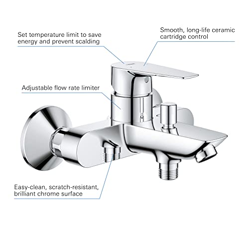GROHE QUICKFIX Start Edge,Miscelatore monocomando per vasca-doccia,cartuccia a dischi ceramici GROHE Long-Life da 35 mm,Cromo,24198001