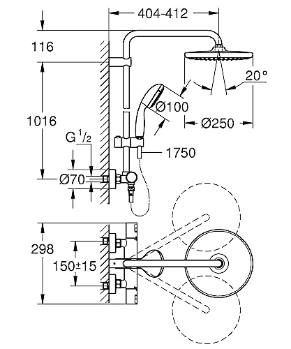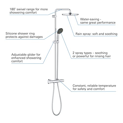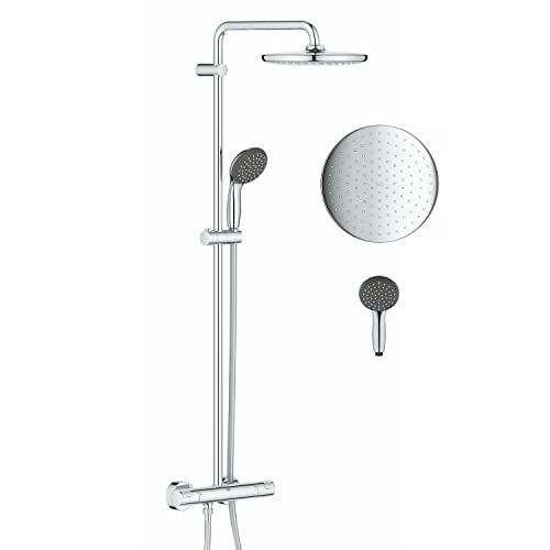 GROHE QUICKFIX |Vitalio Start 250 | Sistema doccia con miscelatore termostatico| cromo | manopola doccia a due getti | supporto regolabile |bordo in silicone anti-urto| 26816000