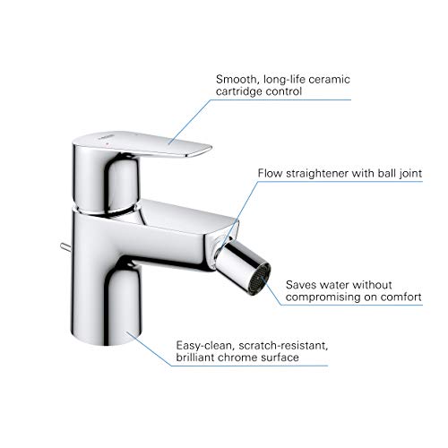Grohe Start Edge Miscelatore Monocomando per Bidet, Cromo, Scarico a saltarello 1 1/4", Installazione veloce, 23345001