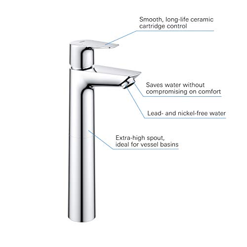 Grohe Start Edge Miscelatore Monocomando per Lavabo a Bacinella Taglia XL, Cromo, Con piletta clic clac, Installazione veloce, 23777001