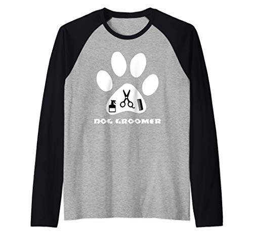 Dog Groomer Gift Dog Grooming Helper Paw Print Scissors Maglia con Maniche Raglan