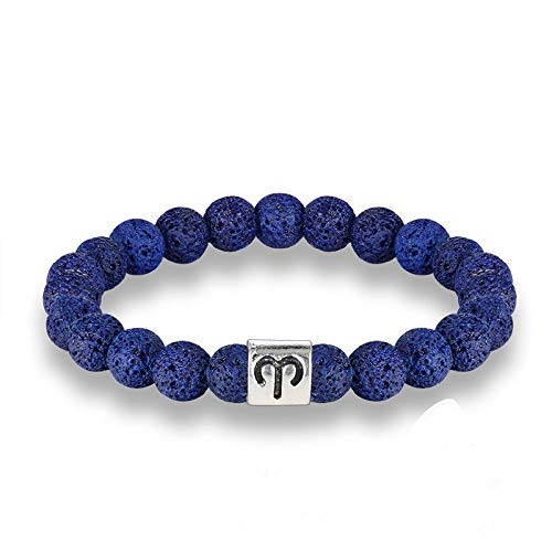 GROPC Bracciale Constellation,Unisex 12 Costellazioni Segni Zodiacali Bracciale con Perline in Pietra Lavica Naturale 8Mm Moda Ariete Elasticizzato Braccialetti Uomo Donna Natale Coppia Regalo Amico