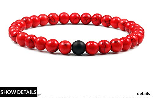 GROPC Bracciali da in Pietre Naturali,Braccialetti di Perle di Malachite con Elastico Rosso-Nero da 6Mm con Turchesi Naturali