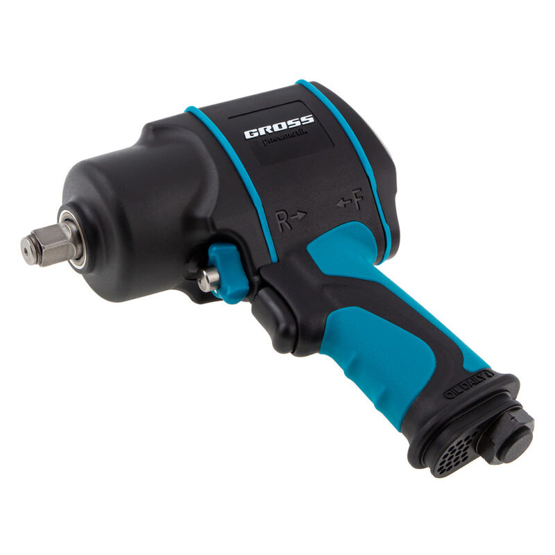 GROSS - Avvitatore ad impulsi 1/2" - 1220 Nm - 6500 giri/min Avvitatore / Chiave ad impulsi pneumatica di qualità professionale. Efficace e resistente. Avvitatore leggero e maneggevole L'avvitatore ad impulsi pneumatico GROSS è progettato per serrare e svitare dadi e bulloni. Il suo peso di solo 2 kg consente di tenerlo con una sola mano, offrendo maggiore maneggevolezza, comfort e la possibilità di lavorare in spazi ristretti. Efficacia e prestazioni Qualità garantita Regolabile su 3 modalità L'avvitatore ad impulsi dispone di un meccanismo di impatto speciale TwinHammer che consente di svitare facilmente tutti i tipi di fissaggi, anche dadi o bulloni arrugginiti. Funziona con compressori che forniscono un flusso a partire da 140 l/min . Di qualità professionale, questo strumento supporta forti sollecitazioni ed è adatto sia per un uso domestico che in officina automobilistica, ecc. L'utensile è realizzato in materiali compositi di alta qualità, mentre le parti meccaniche sono in