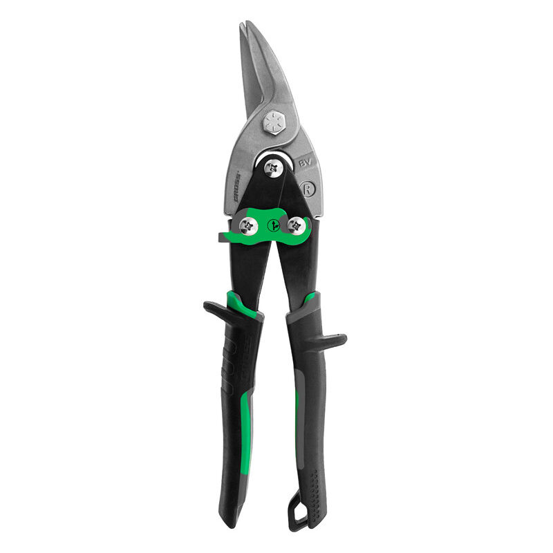 GROSS - Cesoia per metallo "Piranha" diritta - 250 mm Cesoia per metallo in acciaio con impugnatura ergonomica bicomponente. Taglio efficiente e preciso. Strumento di qualità professionale. Taglio semplice ed efficace La cesoia per metallo PIRANHA di GROSS è progettata per il taglio del metallo, in particolare delle lamiere. La sua punta curva consente di realizzare tagli lunghi e precisi. La cesoia ha un meccanismo di doppio collegamento che riduce lo stress sulla mano durante il taglio. Lo strumento consente di lavorare su acciaio laminato a freddo con uno spessore fino a 1,2 mm e su acciaio inossidabile fino a 0,7 mm. Strumento solido e resistente Comfort d'uso Sicurezza Realizzate in acciaio al cromo-molibdeno, queste cesoie sono resistenti e durevoli. Le cesoie sono temprate con un processo di induzione ad alta frequenza e hanno un rivestimento che le protegge dalla corrosione. Le impugnature sono ergonomiche e bicomponenti. Offrono una presa ottimale e una maggiore sicurezza