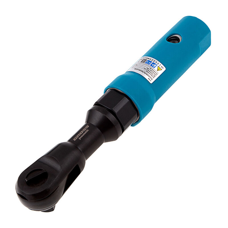 GROSS - Chiave a cricchetto pneumatica G120 - 122 Nm - 160 giri/min Chiave a cricchetto pneumatica. Lavoro rapido ed efficiente con diverse fissaggi. Robusta e resistente. Strumento meccanico professionale Il cricchetto pneumatico GROSS G120 è progettato per lavori di montaggio/smontaggio e consente la svitatura rapida delle viti . Questa chiave a cricchetto sarà particolarmente utile per riparazioni meccaniche, lavori di ferramenta, a domicilio, ecc. Dispone di un attacco quadro da 1/2", compatibile con la maggior parte delle bussole presenti sul mercato. Prestazioni e qualità Lo strumento fornisce un coppia elevata, fino a 122 Nm, consentendo un lavoro efficiente con diversi fissaggi. È utilizzabile con compressori che forniscono un flusso d'aria di 105 L/min. Realizzato in materiali compositi, questo strumento è resistente e durevole. Comfort e maneggevolezza Praticità Lo strumento è rivestito in gomma, consentendo una presa di qualità . Il pulsante di accensione è posizionato