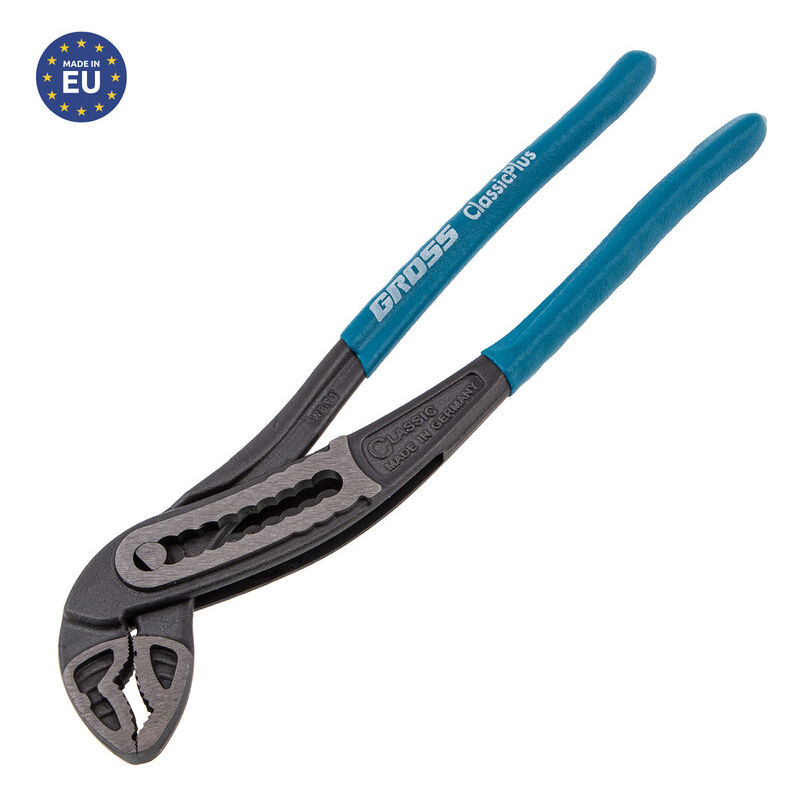 GROSS - Pinza universale - 240 mm Pinza universale 240 mm. Acciaio al cromo vanadio, impugnature in gomma. Lavoro efficiente in sicurezza. Universale, versatile La pinza universale GROSS è progettata per afferrare oggetti di diverse forme e dimensioni, per vari lavori di montaggio come il fissaggio di tubi, raccordi, ecc. Universale, ti permetterà di lavorare con tutti i tipi di punte o raccordi e garantirà un lavoro veloce! Resistenza e durata Il design delle ganasce, dotate di scanalature, insieme alla regolabilità della pinza permettono di afferrare saldamente qualsiasi oggetto fino a 50 mm: bulloni, dadi, chiodi, ecc... Realizzata in acciaio al cromo vanadio, questa pinza garantisce efficienza, resistenza e durata nel tempo. Il rivestimento Titan-Finish offre una protezione aggiuntiva contro gli agenti esterni (corrosione, liquidi, ecc.) e garantisce una maggiore durata nel tempo. Comfort e affidabilità La pinza è dotata di impugnature in gomma, stampate ad iniezione, che